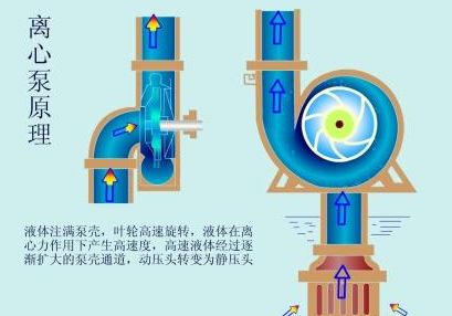 啟動前,泵殼和吸入管注滿水,然后啟動電機。泵軸驅動葉輪和水高速旋轉。水以離心的方式運動并被拋到葉輪的外緣。水通過蝸殼泵殼的流道進入泵的壓力管道。
